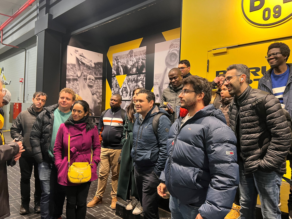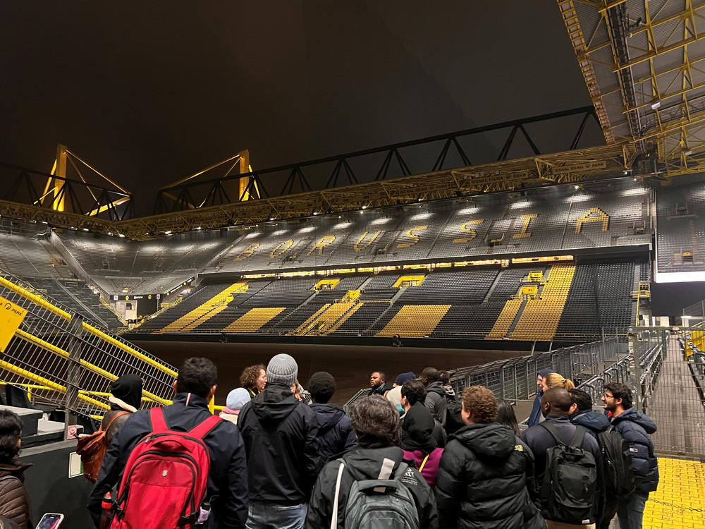 Fußball ist ein wichtiger Bestandteil des Lebens in Dortmund. Da dürfen regelmäßige Touren durch den Signal Iduna Park, das Dortmunder Stadion des BVBs nicht fehlen. Dabei können sich unsere internationalen Forschende gemeinsam einen Einblick hinter die Kulissen des Stadions und des Sportes verschaffen.