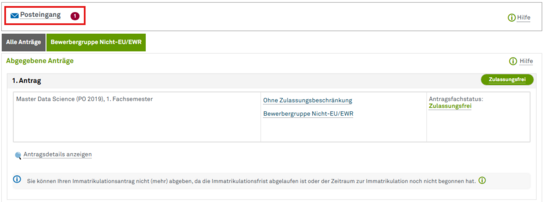 Sollten Sie einen Zugangs-/Zulassungsbescheid erhalten, finden Sie dort Informationen zur Dauer der Gültigkeit Ihres Bescheides, möglichen Auflagen und Einschreibfristen.